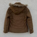 Stay stylish and warm with this elegant brown puffer jacket for women. Designed with a high neck, snap buttons, and adjustable hood with faux fur trim, it’s a perfect winter essential for chilly days.
