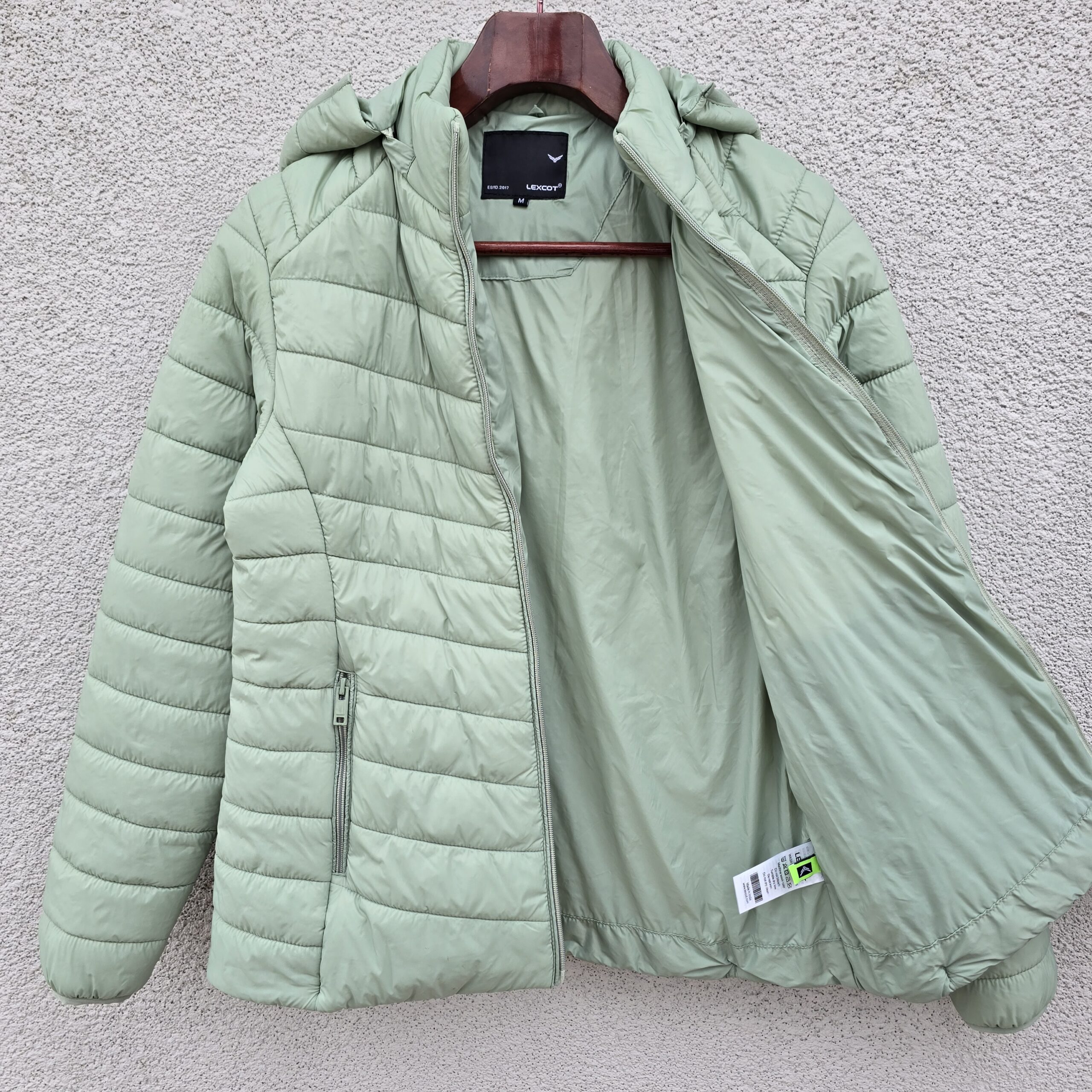 stay cozy and stylish this winter with this light mint green women’s puffer jacket, available in sizes M to XXL. Designed with a premium 20-D outer fabric and insulated with 180 GSM micro fibre, it ensures reliable warmth without adding bulk. The detachable hood offers versatility for changing weather, while two functional side pockets provide convenience and comfort. It includes a proper inner label and detailed wash care instructions stitched inside, ensuring long-lasting use and easy maintenance. This jacket balances fashion, warmth, and utility perfectly.